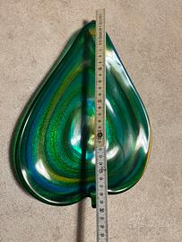 ciotola svuotatasche a forma di foglia In vetro di murano nei toni del verde Firmata Luigi Mellara Anni ‘70