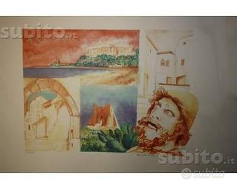 Quattro meravigliose riproduzioni a stampa di dipinti originali di Michele Caldarone con immagini di Fondi, Terracina, Sperlonga e Monte San Biagio. In quadricomia, in serie limitata di 100, numerate (29\100) e firmate a mano dall'Autore. Realizzate nel 2002 su incarico della provincia di Latina. Dimensioni 50x70. In folder originale. Molto belle e decorative. Spese di spedizione 12 Euro a carico del destinatario.