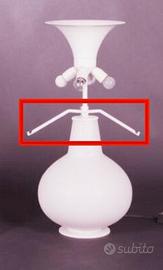 Parte di ricambio smontata da una lampada Fontana Arte modello "Fontana Grande" del 1965. Il pezzo si presenta con la sua vernice originale con evidenti segni del tempo ma è in ottime condizioni strutturali. Si tratta del "ragno" che sostiene il paralume in vetro nella lampada modello 1853/1 alta 78 cm e larga (diametro del paralume in vetro) 47 cm.