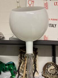 Nella lampada da terra Parolona convivono tre diversi tipi di lavorazione del vetro: opalino soffiato nel paralume orientabile,naturabile nello stelo di cristallo naturale molato nella base. Cavo di alimentazione.