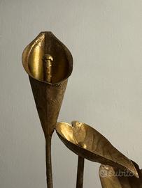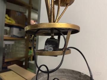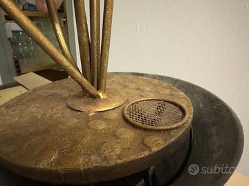Fontana zen. Un piccolo motore elettrico fa risalire l'acqua all'interno dello sello dei fiori più alti da cui discende attraverso gli altri fino alla ciotola di base. Il mormorio dell'acqua è rilassante. Può servire a ridurre la secchezza dell'aria Alta 60cm base rotonda circa 25cm Color oro