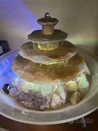 Fontana arredo da interno in pietra, arricchita da decine di pietre naturali. Tre modalità di colori diversi.