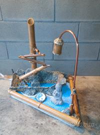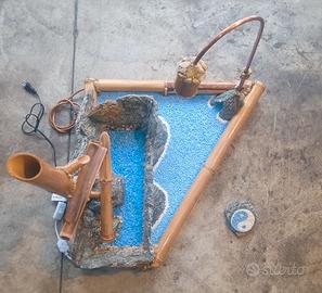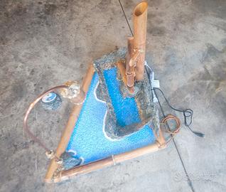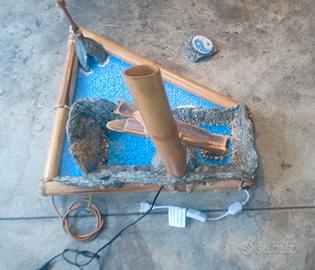 Vi presento questo articolo : Fontana fatta in pietra di Luserna, pietre , legno "bambù" ,rame, ecc... con meccanismo di movimento in bambù. Ho fatto una lampada con tubo di rame che illumina l'Interno fontana,