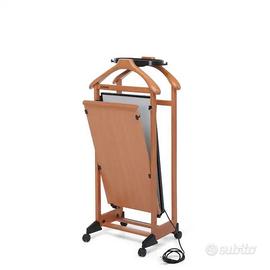 L'indossatore in legno IlMettimpiega elettrico di Foppapedretti è un servomuto con pannello imbottito riscaldante e autoregolante per tenere in piega i pantaloni. Pratico e funzionale, ha anche due spalle per appendere giacche e camicie, una staffa porta pantaloni e un'altra con ganci regolabili per appendere le gonne, vaschetta porta oggetti con ganci per appendere cravatte e cinture, una comoda base porta scarpe e ruote piroettanti antigraffio per facilitare gli spostamenti. I punti di forza de IlMettimpiega elettrico di Foppapedretti sono: - pannello imbottito elettrico, riscaldante e autoregolante, per tenere in piega i pantaloni - solido e durevole nel tempo grazie alla struttura in legno massiccio - dotato di tutti gli accessori per riporre gli abiti in modo ordinato - pratico svuotatasche porta oggetti - spazio per riporre anche le scarpe - ruote piroettanti per facilitare gli spostamenti