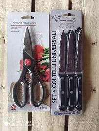 Forbici da cucina multiuso inox , + 6 coltelli da tavolo modello " Berni group ." il tutto nelle sue confezioni originali, mai usati.