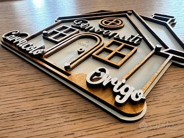 Inviami il tuo nome e le tue pregerenze ed avrsi il tuo fuoriporta personalizzato anche nella confezione. Interamente fatto in legno.