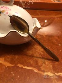 Formaggiera vintage anni 70. Collezione Aurora. Decorazione con motivi floreali e oro. Completa di cucchiaino in argento.