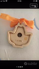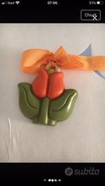 Formella piccola Thun a forma di tulipano arancio e verde.