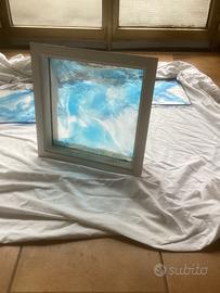 Prodotte da reflex….n.7 Pz. Trasparente/azzurro….. N.6 pz. Trasparente onda/azzurra…bordi e superficie irregolari cm30,7x30,7 vendo a 40,00€ cadauna…(alcune ancora nell imballo originale mai aperte)..disponibili anche telaietto in legno verniciato dove erano inserite vendo a 20,00€ cadauno….vendo anche pezzi singolarmente….