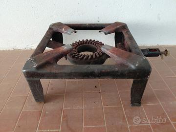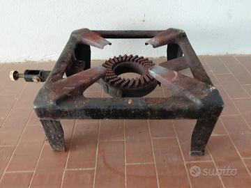 Fornellone a gas in metallo/ghisa, ideale per cucine esterne, sagre, campeggio, bolliture, conserve e uso intensivo. Caratteristiche: Dimensioni struttura: circa 40 × 40 cm Altezza: circa 17 cm Diametro fuoco: circa 17 cm Valvola regolazione gas Attacco standard per tubo gas Struttura robusta, stabile e resistente Prodotto italiano