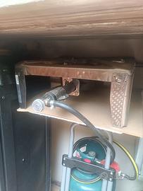 fornellone a gas in acciaio completo di bombola da 10 kg e erogatore usato una sola volta il carrello visibile in foto non è compreso