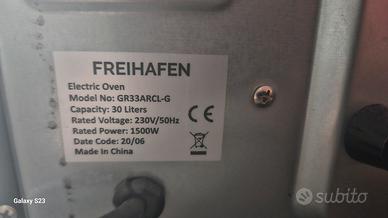 Forno Elettrico Freihafen 30 litri 1600W Mini forno con funzione di scongelamento 7 modalitá di cottura 0-230° e 0-60minuti timer, doppia porta in vetro con pratica maniglia, mini forno a porta libera offre spazio sufficiente per pizza, panini e dolci ad esempio torte e polli da barbecue (sullo spiedo del barbecue)