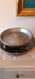 Bel fornetto in alluminio con supporto e piatto di cottura, con coperchio di chiusura munito di valvola, e finestrella per vedere all' interno. Buona capacità. Ottimo per pizza.