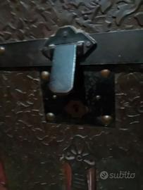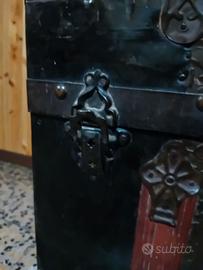 Forziere baule antico dell'800 in legno e ferro esteticamente molto gradevole, con struttura in legno ricoperta da lavorazioni floreali