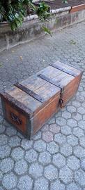Forziere seconda guerra in ottimo stato. Restaurato lasciandolo più possibile alla sua originalità. Legno massello corredato con una carpenteria notevole. 76x30 alt.30.