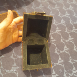 Piccolo forziere in legno massello e foderato in velluto.