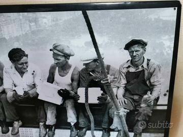 Foto vintage su lastra in metallo metallo molto Rara Made in Germany originale. Misura 40x60 “Pranzo in cima a un grattacielo” è il nome di questa famosissima fotografia datata 1932. Nello scatto sono rappresentati undici operai edili mentre consumano il loro pranzo, seduti su una trave d’acciaio a circa 260 metri d’altezza durante la costruzione dell’RCA Building, una parte del Rockefeller Center, a New York.