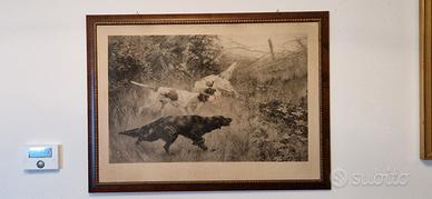 Una meravigliosa fotoincisione di grandi dimensioni tratta dal dipinto originale di Thomas Blinks. Incorniciata in cornice con inserto dorato. Steady! è una meravigliosa fotoincisione di tre setter che stanano la selvaggina. Una splendida stampa di una scena di caccia.