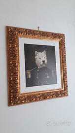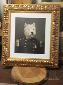 STAMPA su tela pittorica di WITE TERRIER con cornice in bordo oro. Ideale per casa