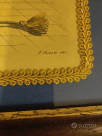 Si tratta di un quadro che incornicia una stampa storica e firmata. L'opera è stata realizzata con una tecnica di incisione e presenta una cornice d'epoca con un pass-partout decorativo. I nomi di Filippo Palizzi e Francesco Pisante suggeriscono un legame con la scuola napoletana del XIX secolo.
