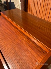Chiusura scorrevole a tapparella, si apre e offre una superficie di scrittura estraibile e due scomparti portaoggetti.