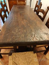 tavolo fratino in legno massello, probabilmente di castagno o noce, risalente all'epoca del XIX secolo.