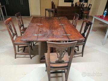 Tavolo fratino apribile con sei sedie in legno massello