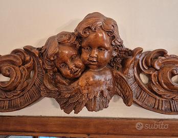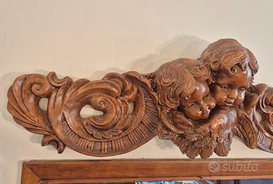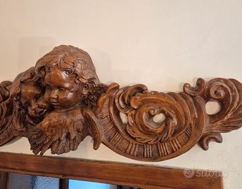 Bellissimo fregio decorativo da parete marca SIA con due putti (angioletti), realizzato in resina con finitura effetto legno molto realistica. Ideale come sopraporta, sopra specchio o per arredamento classico, shabby chic o vintage. 1m x 30 cm Prezzo trattabile