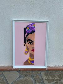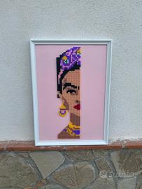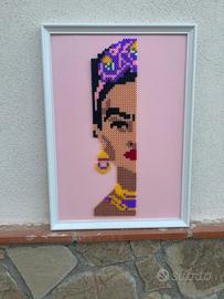 Quadro realizzato interamente a mano da me stessa in pyssla dotato di sola cornice bianca in legno, grandezza A3, senza vetro/plexiglas, su sfondo in cartoncino rosa