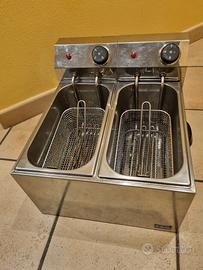 Friggitrice Elettrica da Banco a Doppia Vasca interamente in acciaio inox.