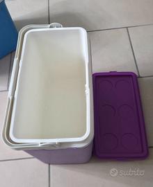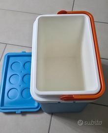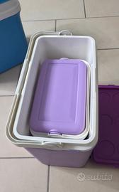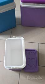 N.3 frigoriferi portatili, mai utilizzati. Quelli viola si possono conservare uno dentro l'altro. Quello blu presenta segni sull'esterno. Non presentano parti rotte o scheggiature. Capienza -blu grande dovrebbe essere 26/28litri -viola grande 24litri -viola piccolo 10litri Possibile consegna a Noventa Padovana,Pianiga. Visti e piaciuti.