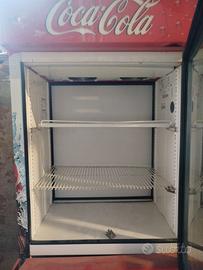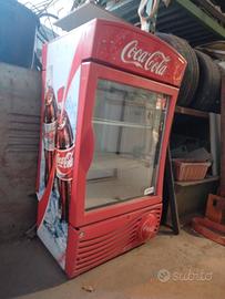 Frigorifero da bar coca-cola, si apre davanti e dietro, esteticamente più che in buono stato, allo stato attuale non è funzionante in quanto è stato asportato il motore, l'oggetto può essere nuovamente reso funzionante con un nuovo motore oppure può essere usato come vetrinetta o mobiletto