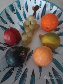 frutta in marmo ul6 pezzi composta da Pigna d'uva un arancio una albicocca una pruna due fichi