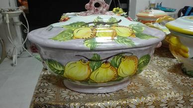Vari modelli di centrotavola per mobile decorati con frutta. Prodotto interamente decorato a mano e dipinto. Ceramica smaltata. Tipica lavorazione vietrese. Circa diametro 40cm