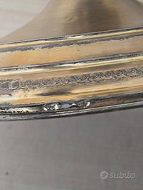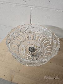 frutttieta in cristallo di rocca e base in argento 800 (ce il simbolo marchiato) molto bella se si pulisce il piede verrà bellissima!