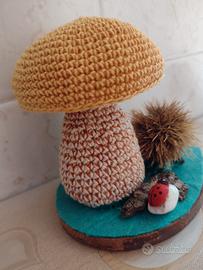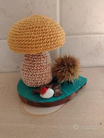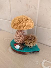 Bellissimo fungo porcino - Boletus Edulis - lavorato all'uncinetto, con dettagli molto curati. Un piccolo riccio di castagne completa la composizione. Perfetto per decorare la tua casa in autunno! Prodotto Handmade