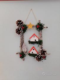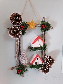 Fuori porta natalizio rustico con legno ed elementi naturali, fatto completamente a mano, pezzo unico per chi ama lo stile shabby
