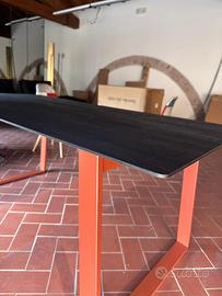 -Tavolo con gambe rosse e pianale in legno bruciato da 1750€ A 990€
