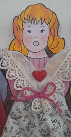 Fuoriporta country realizzato interamente a mano con legno, deliziose cotonine americane, pizzetti, nastrini, passamanerie e vecchia tela di casa. i bimbi sono stati dipinti con colori acrilici e sono molto ricchi di dettagli. le misure del quadro sono 42 cm. di larghezza e 32 cm. di altezza.