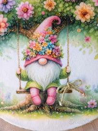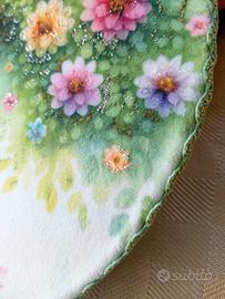 Realizzato in pannolenci, anche i fiori, glitterato, cornice in legno. Ideale come decorazione in casa o come regalo