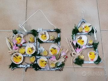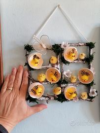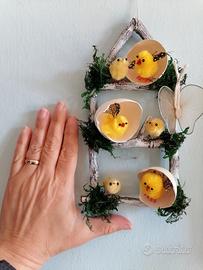 Decorazione pasquale fatta artigianalmente da me con elementi naturali, pezzi unici, disponibili in due dimensioni, il prezzo si riferisce alla composizione più piccola