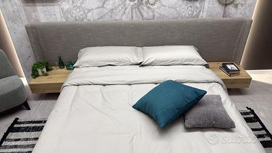letto mod.Fusion matrimoniale con rete a doghe compresa nel prezzo rivestimento testata in tessuto giro letto in in tinta rovere , pronta consegna 🚚, dimensioni L 290 P 210 H testata 96 cassetti sospesi non fissati al muro