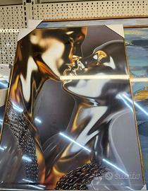 Questa straordinaria opera raffigura due figure metalliche oro e argento che si sfiorano in un bacio magnetico, simbolo di passione, unione ed energia pura.