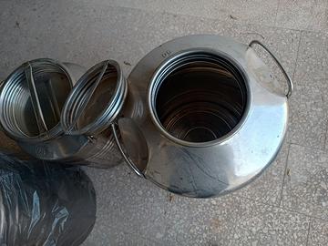 n. 3 fusti cilindrici in acciaio per alimenti 50 L + 50 L. + 25 L puliti ed igienici utilizzati una sola volta, integri - Antonio 3408268442
