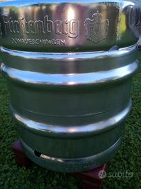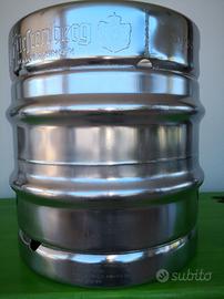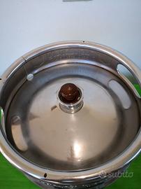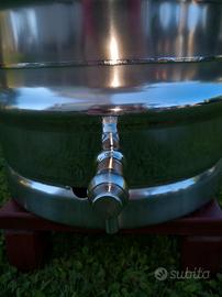 contenitore di design per arredamento di acciaio inox 316 ISO capacità 30 litri spessore acciaio di circa 3 mm molto resistente come spessore dell'acciaio e all'aggressione di qualsiasi liquido anche acido fusto di birra riadattato per contenere olio di oliva con rubinetto girevole anti goccia di acciaio inox