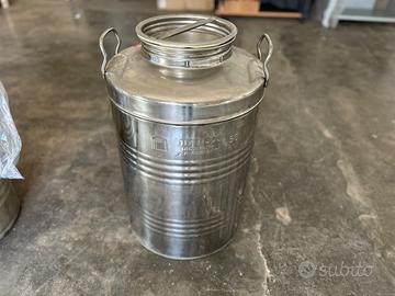 Fusto/bidone/contenitore per olio da 50 litri. Interamente in acciaio inox. Perfettamente integro.
