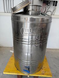 Vendo fusto professionale per alimenti da 100 litri marca Italfusti, modello Superinox 18-10 (il top di gamma per spessore e qualità dell'acciaio). Ideale per la conservazione di olio extravergine d'oliva, vino o miele. Il fusto è completo di: • Rubinetto professionale salvagoccia originale. • Coperchio a vite con guarnizione a tenuta stagna in perfetto stato. • Piedistallo artigianale in legno massello realizzato su misura da un falegname. È estremamente robusto e stabile, studiato appositamente per reggere il peso del fusto a pieno carico senza oscillazioni. • Superficie ampliata: ho aggiunto delle tavole gialle rimovibili per una base d'appoggio ancora più larga, ma si possono togliere facilmente se si preferisce la base in legno naturale. Condizioni: L'oggetto è stato tenuto con massima cura. Come visibile dalle foto, l'interno è perfettamente lucido, pulito e privo di qualsiasi residuo o segno di usura. Pronto all'uso immediato. Prezzi per vendita separata: • Solo Fusto: 120 € • Solo Piedistallo artigianale: 50 € • Set completo (consigliato): 160 €. Disponibile per visione e ritiro a mano a Cagliari.