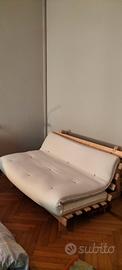 Futon + materasso marca La Redoute. Struttura in pino massello chiaro. Dimensioni aperto cm 140x195. Altezza da chiuso cm 72 Profondità da chiuso cm 110