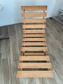 Vendo poltrona letto, reclinabile completamente, con materasso compreso. Unico difetto sul rivestimento in tessuto del materasso, che presenta un paio di lacerazioni. Il materasso é intatto, come anche la struttura in legno.Può essere usata come poltrona o come letto (singolo) poiché la struttura in legno é apribile e reclinabile fino a 180 gradi.