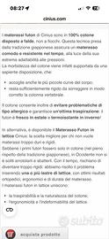Materasso futon in cotone a falde 100% Marca “Cinius” Misure 120x200 (piazza e mezza) Prezzo di acquisto 330€